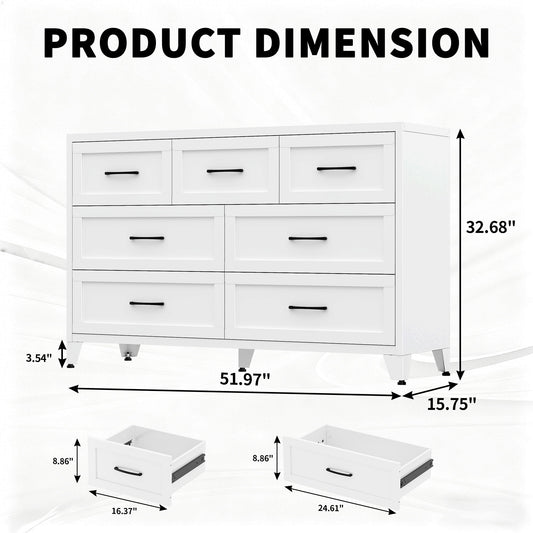 7-Drawer Dresser, Low-Profile Storage - White