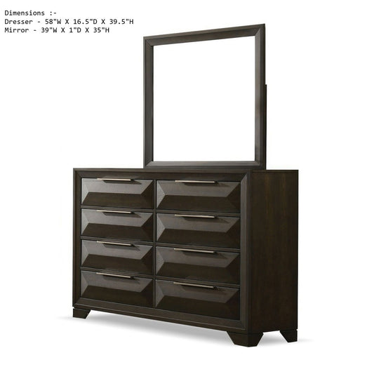 Dresser With Mirror Beveled Bracket Feet Handles 8 Drawers - Espresso