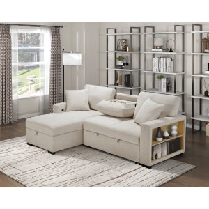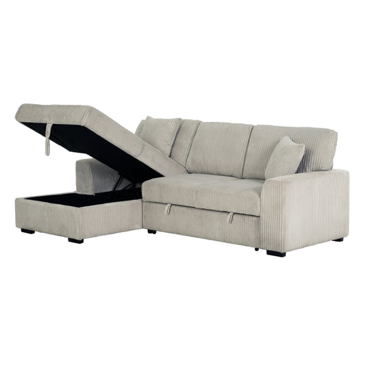 TAUPE Fabric RHF Pull Out Sectional Sofa & Storage