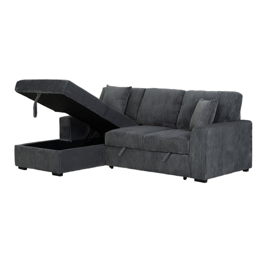 DARK GRAY Fabric LHF Pull Out Sectional Sofa & Storage