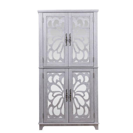 Modern Sideboard Buffet With 4 Mirrored Doors, Adjustable Shelves