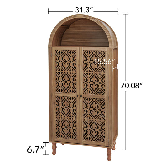 Tall Kitchen Pantry Cabinet With Hollow Carved Doors Adjustable Shelves Versatile Storage Cabinet For Kitchen - Walnut