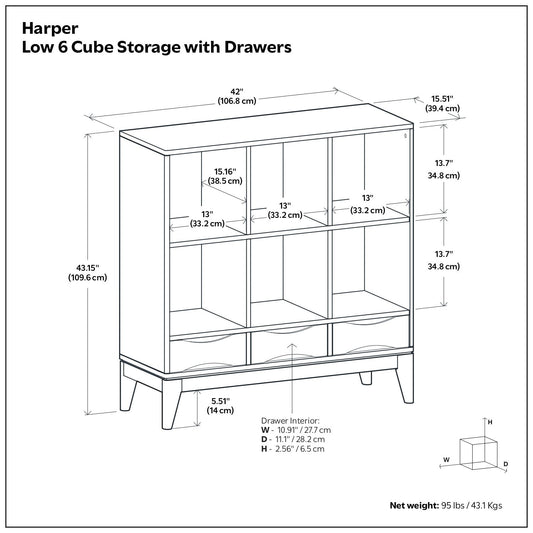 Harper - Low 6 Cube Storage With Drawers - Walnut Brown
