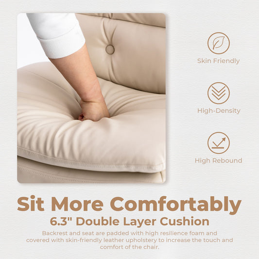 Large Size Armless Home Office Desk Chair Vanity Chair No Wheels - Beige