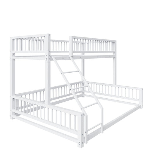 Bunk Bed Frame With Ladder And Safety Guardrails