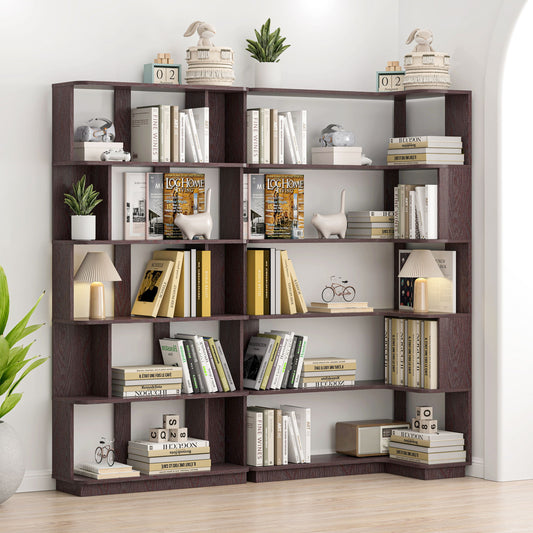 5 Tier Open Bookshelf, Free Combination Storage Shelving For Living Room - Dark Brown