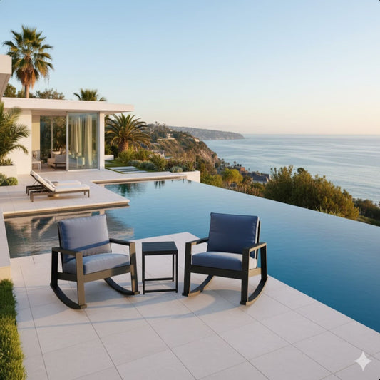 Outdoor Rocking Bistro Set Of 3, Oversized Rocking Chairs With Cushions And Side Table - Black / Blue