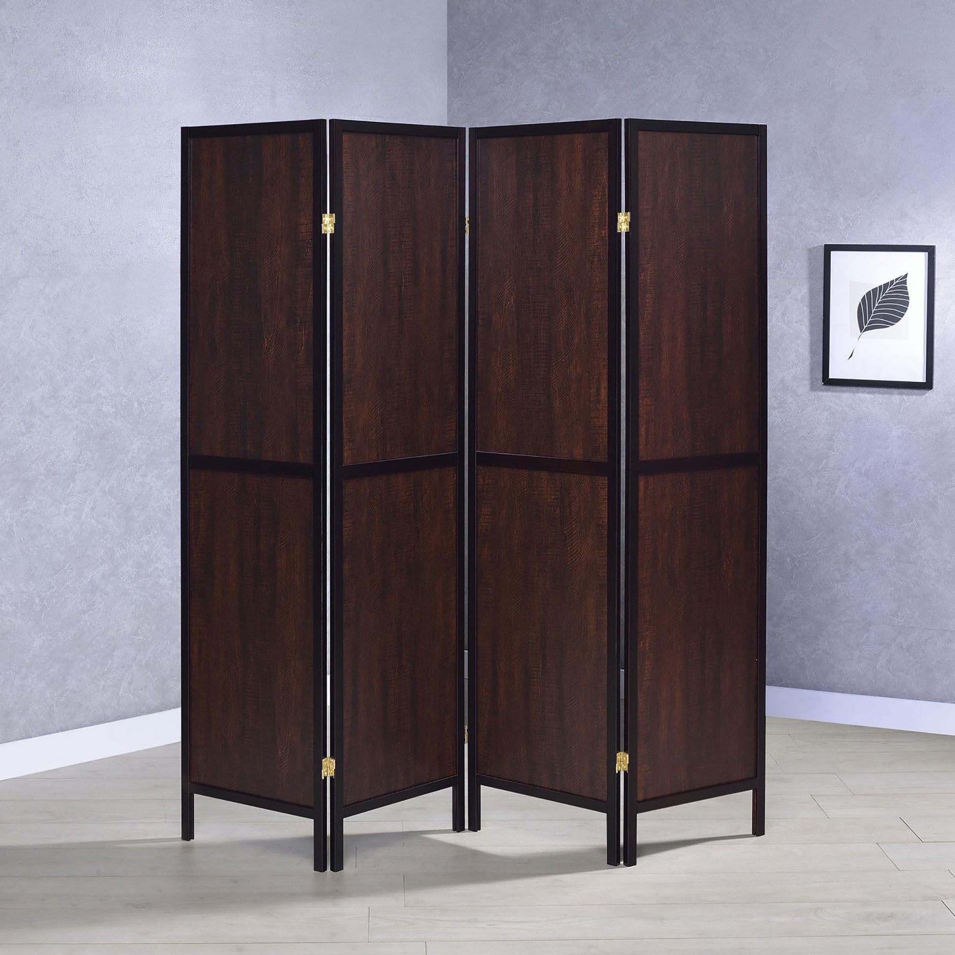 - Sleek Brass Hardware: Adds metallic contrast and visual interest while securing panel connections