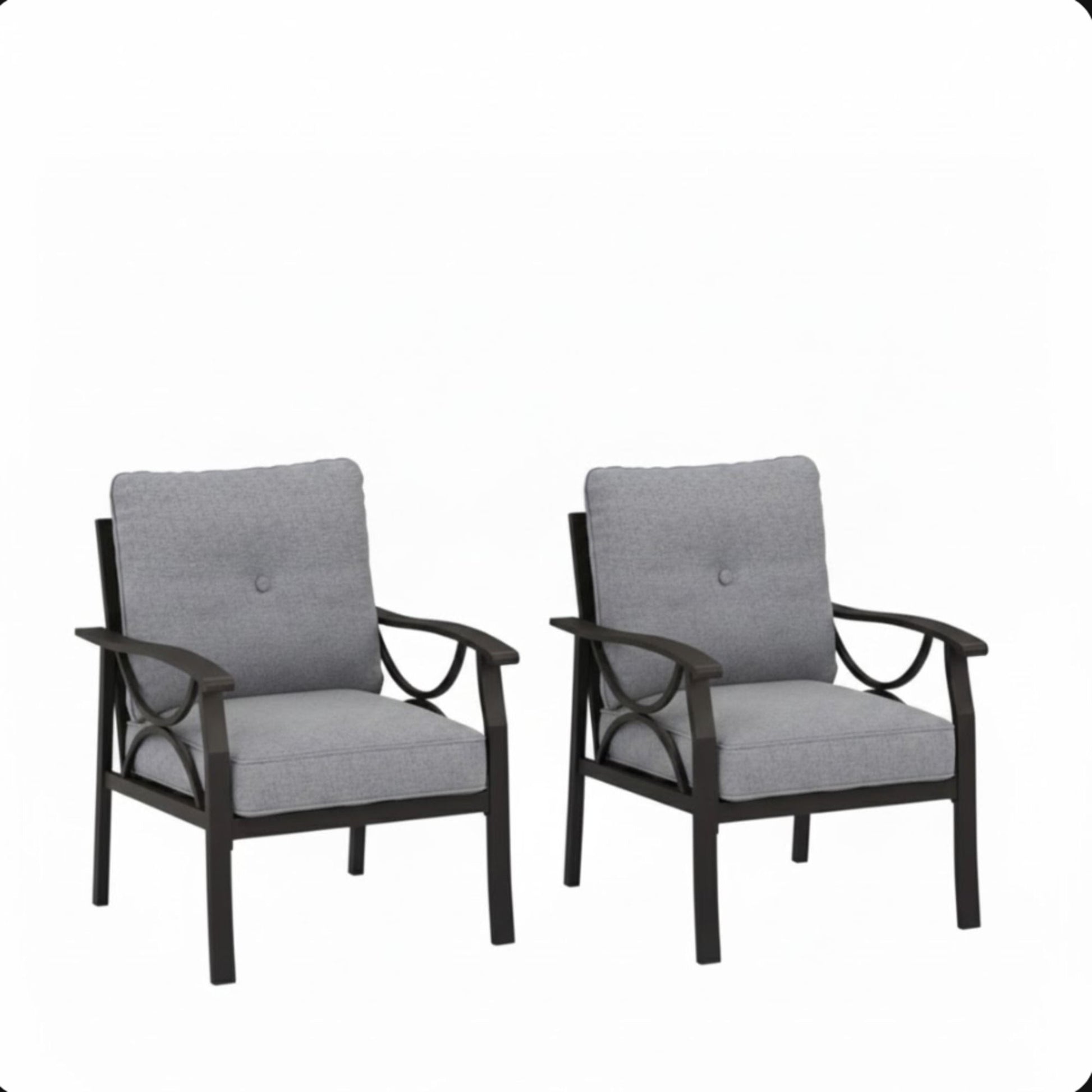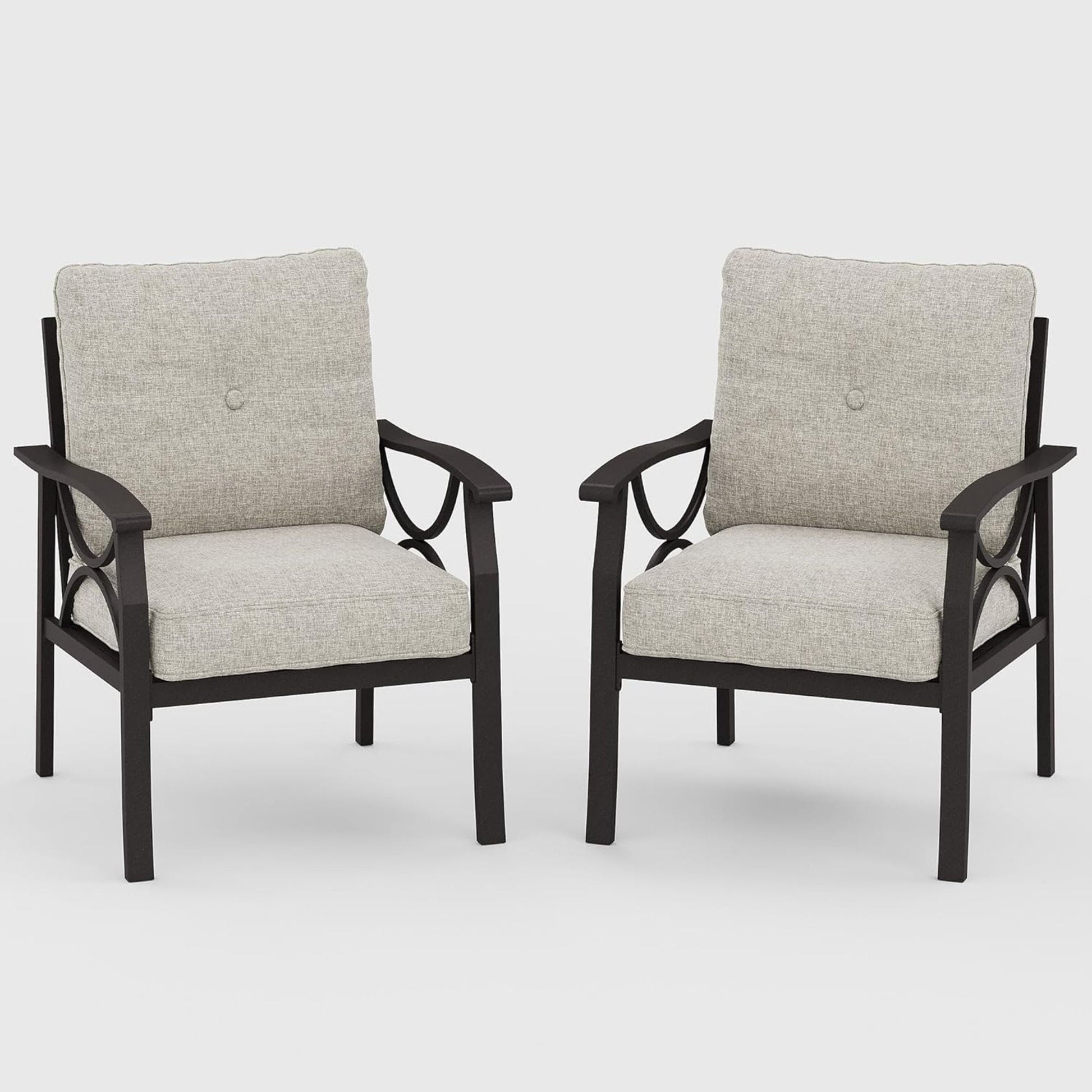 All Weather Armchairs With Cushions, Sculptural Design (Set of 2) - Black / Gray