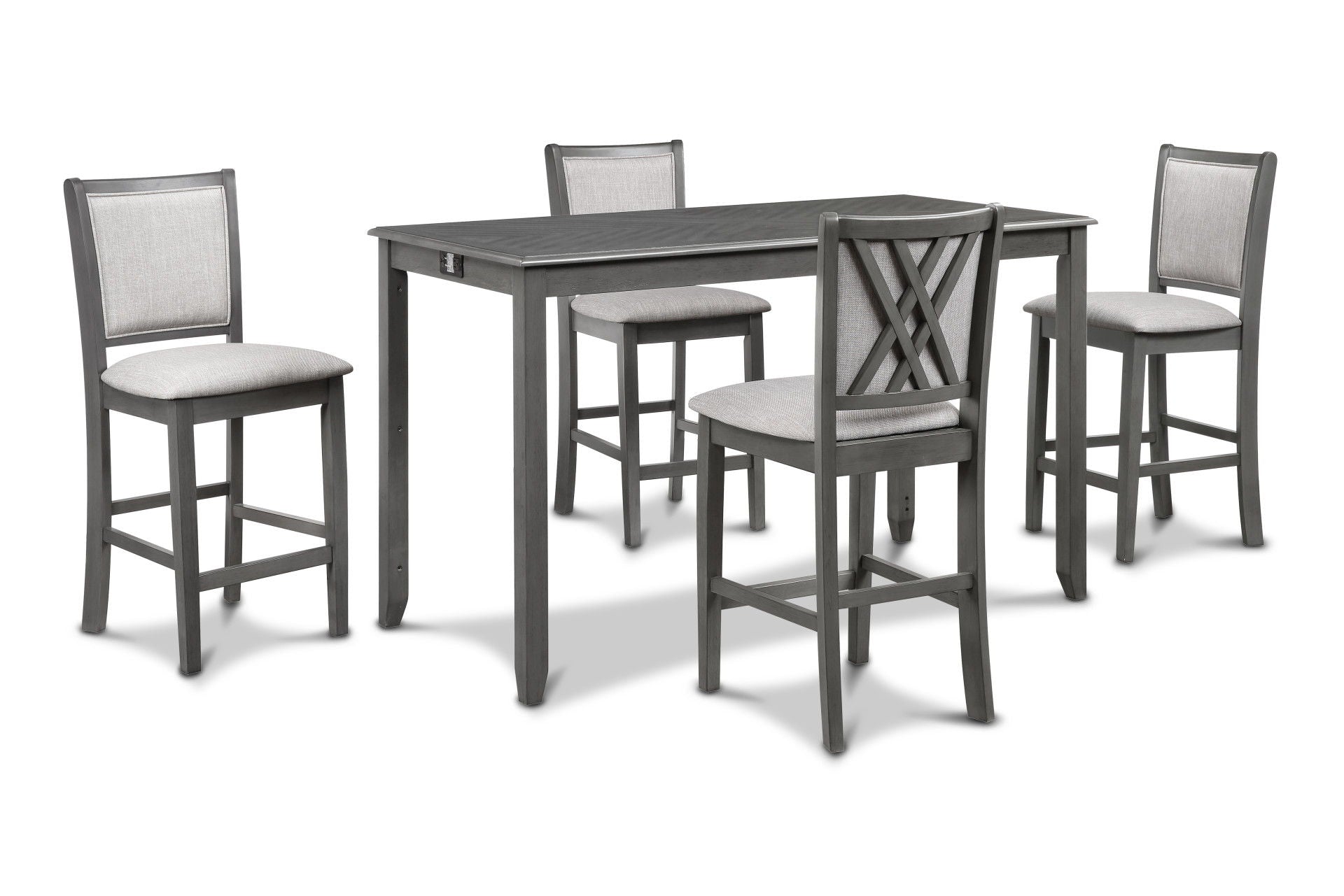 Amy - 5 Piece Counter Dining Set (Table With Storage & 4 Chairs) - Gray
