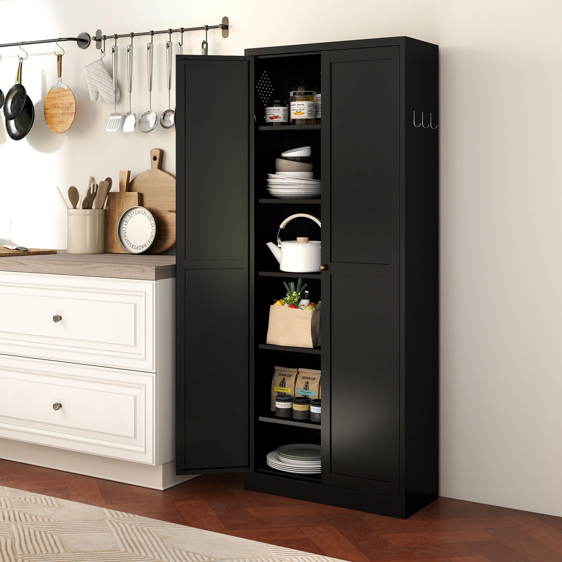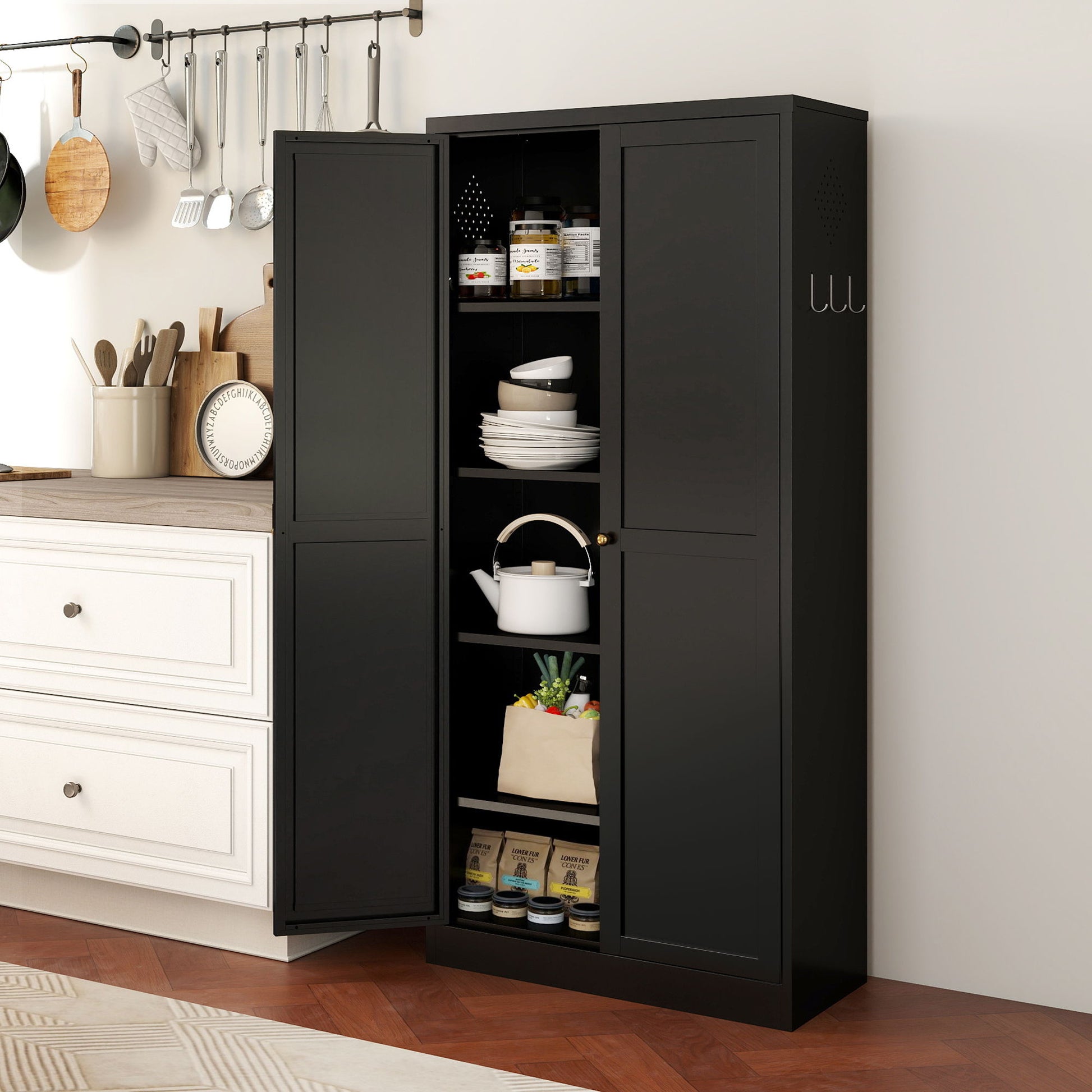 Kitchen Pantry Cabinet With 4 Adjustable Shelves, Heavy Duty Freestanding Organizer - Black