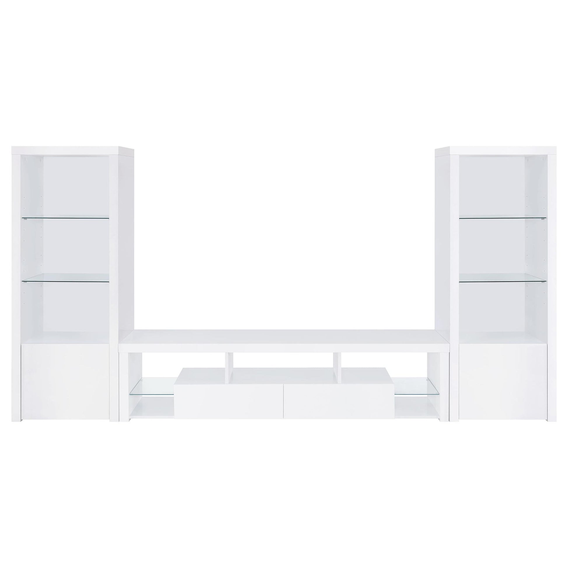 Lance - 3 Piece TV Entertainment Center With Shelves - Gloss White