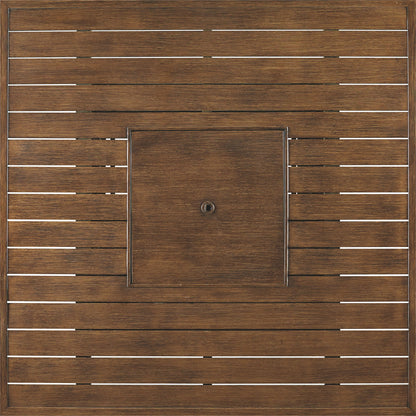 Turn your backyard space into your own piece of paradise with this outdoor dining set. Though the fire pit table looks remarkably like wood, it’s made of sturdy, rust-proof aluminum that’s perfectly suited for alfresco living. Enhancing the rustically refined aesthetic: side panels accented with all-weather, handwoven resin wicker. With the press of a button, ignite a flickering flame that dances over a bed of glass beads. The matching bar stools are pretty enough for trendy interiors, yet durable enough to weather the elements.