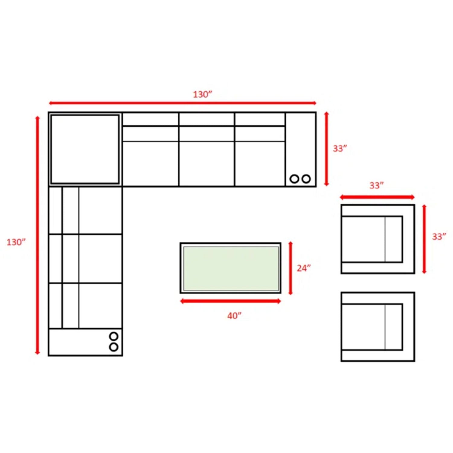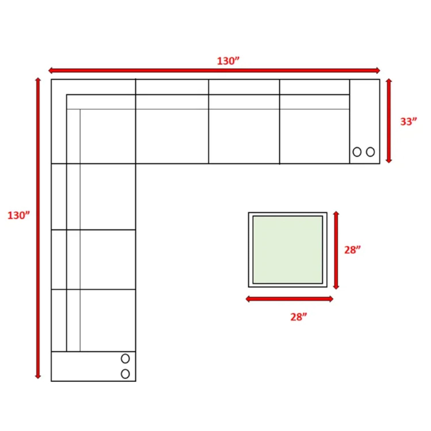 130.0"W x 130.0"D x 26.0"H - 245.0 lb
